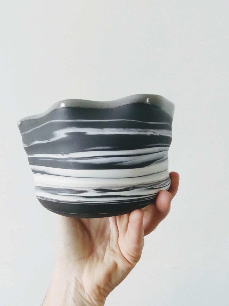 J’ai suivi des études à l’Académie Royale des Beaux Arts de Bruxelles en création textile et j’apprends la céramique grâce à ma maman qui la pratique depuis des années.