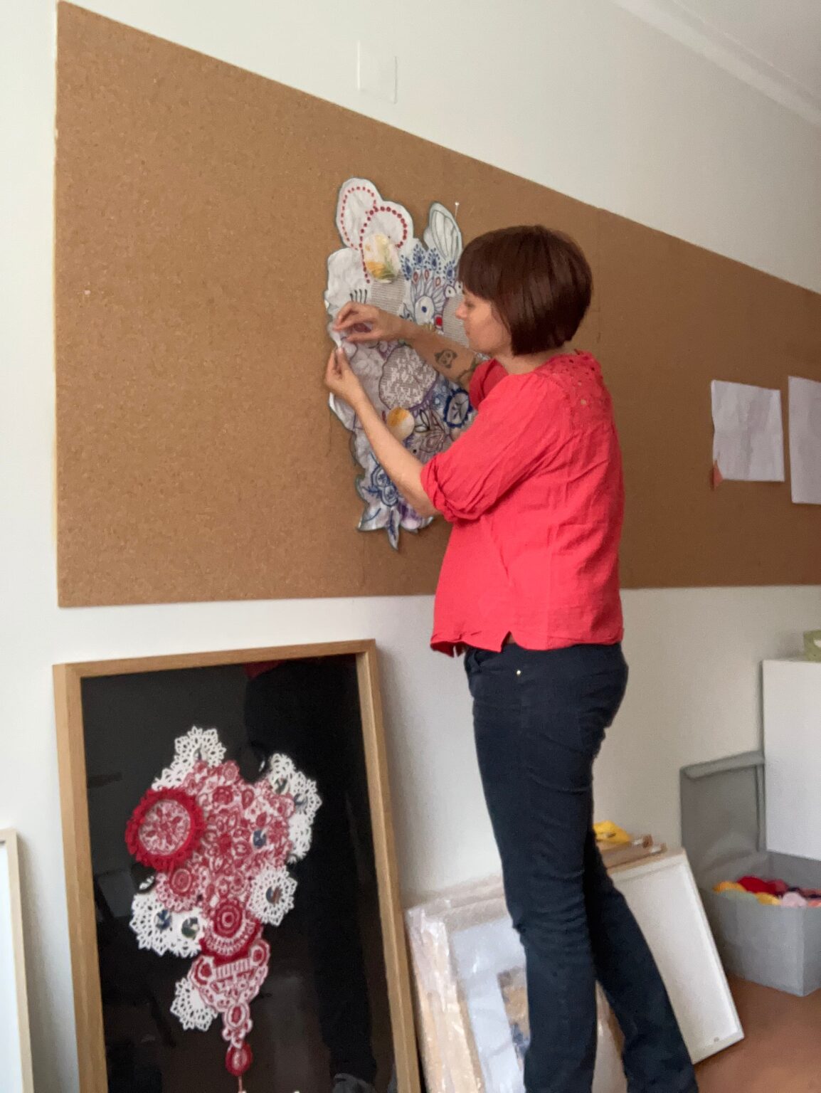 Je capture l’âme portugaise de manière plus intense, en travaillant avec des pratiques artistiques traditionnelles. Principalement de la céramique. Je réinterprète également la broderie traditionnelle de la région du Minho au nord du Portugal.